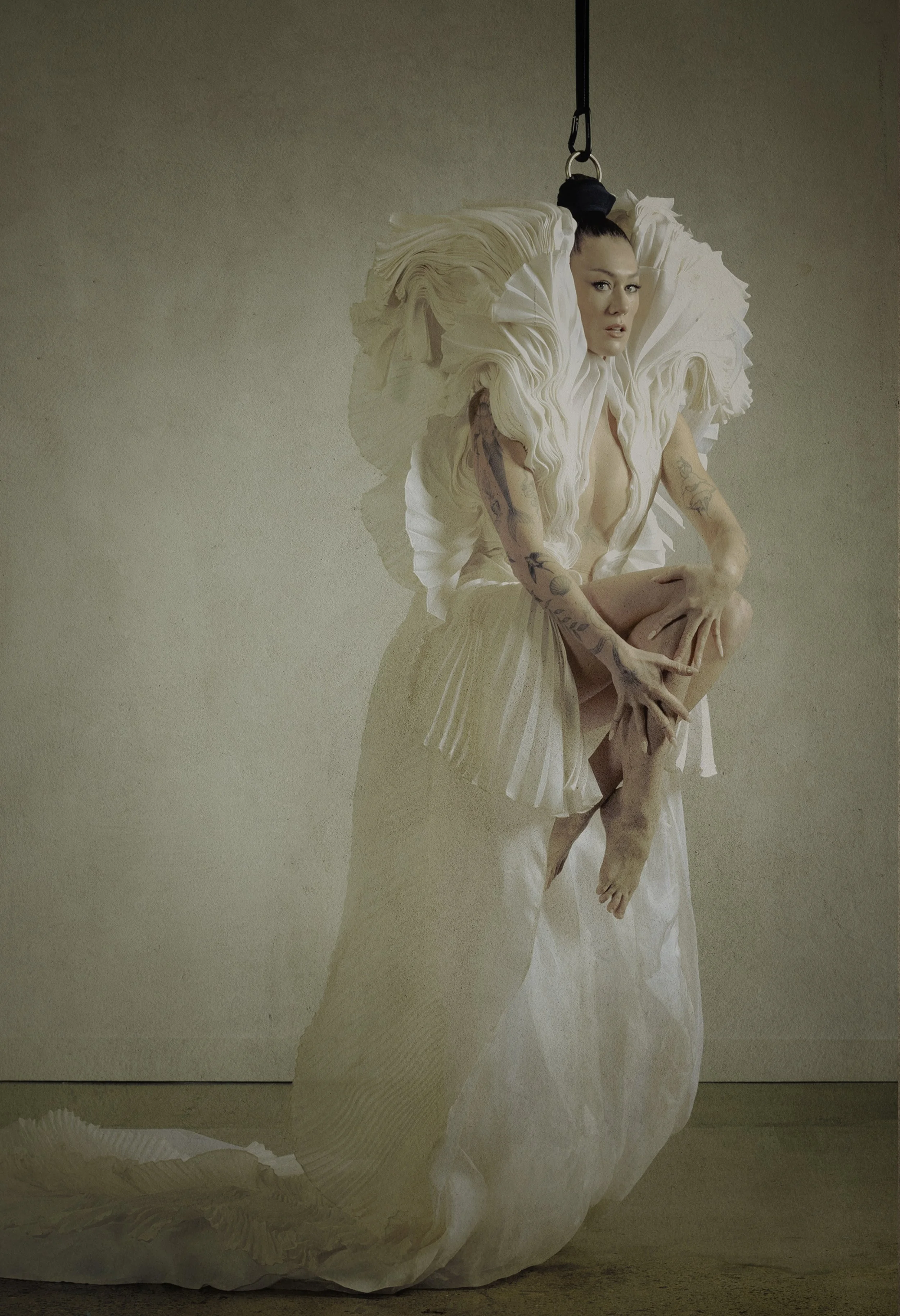 Charlotte stepped into this vision with such strength and grace, embodying both the artistry of an acrobat and the elegance of couture. I am so grateful for her presence, trust, and willingness to merge disciplines in a way that feels powerful and alive.