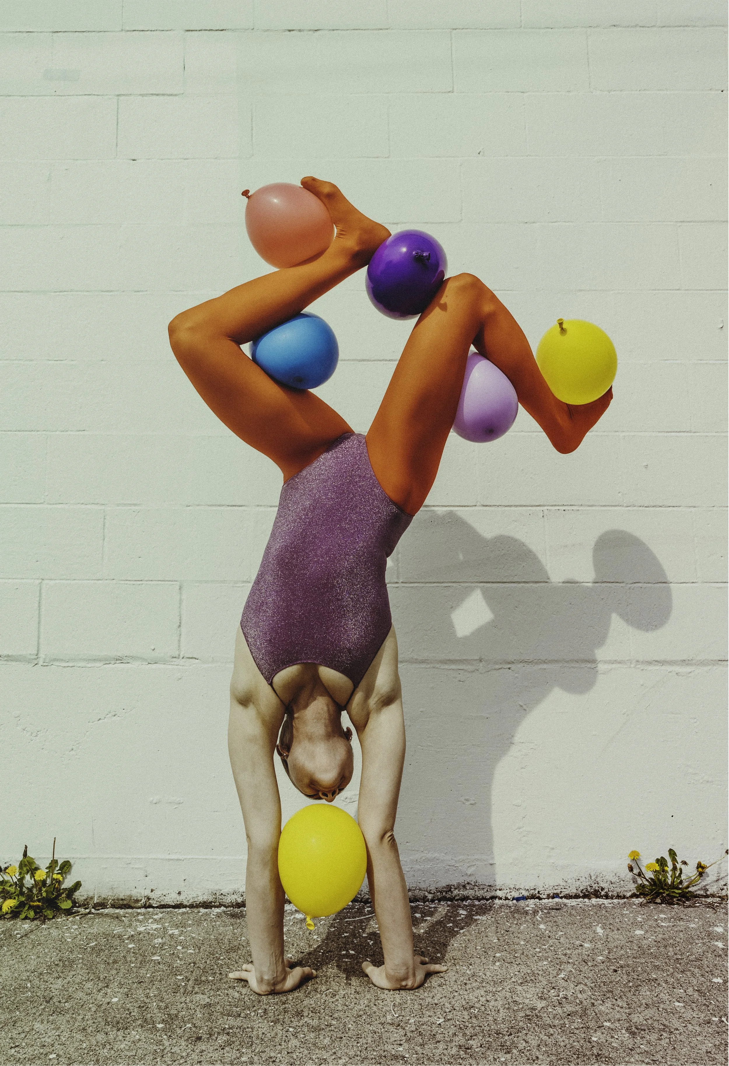 In these images, we took her talent out into the streets and amplified it with balloons. The combination of her strength, control, and years of training with the playful, unexpected presence of balloons created something new, a balance between precision and whimsy.